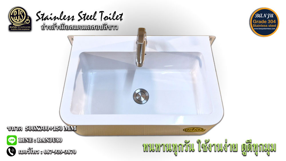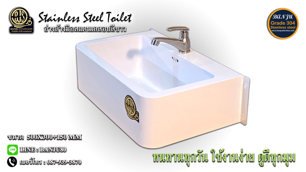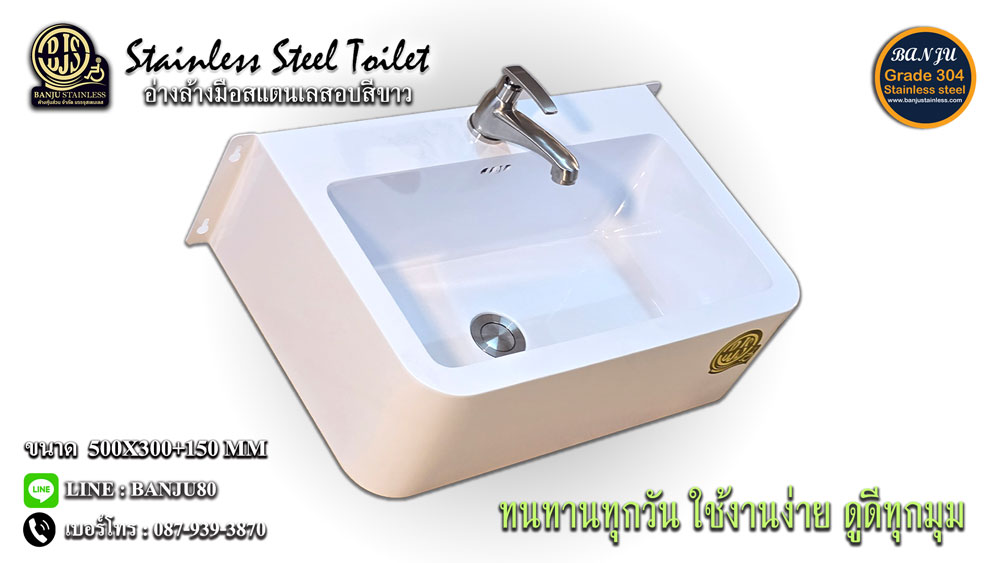 เป็นสุขภัณฑ์รุ่นใหม่ที่ตอบโจทย์ทั้งด้านความงามและประโยชน์ใช้สอยอย่างลงตัว ด้วยวัสดุสแตนเลสคุณภาพสูงที่ผ่านการอบสีพิเศษให้ผิวเคลือบสีขาว เรียบเนียน ทนทาน และดูสวยงามทันสมัย เหมาะสำหรับห้องน้ำในบ้านพักอาศัย สำนักงาน โรงแรม หรือพื้นที่สาธารณะที่ต้องการภาพลักษณ์สะอาดและมีระดับ