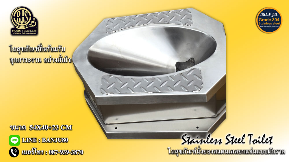 ผลิตจากสแตนเลสเกรดอุตสาหกรรม ทนต่อความชื้น การกัดกร่อน และการใช้งานหนัก ไม่แตกร้าวเหมือนโถสุขภัณฑ์เซรามิก